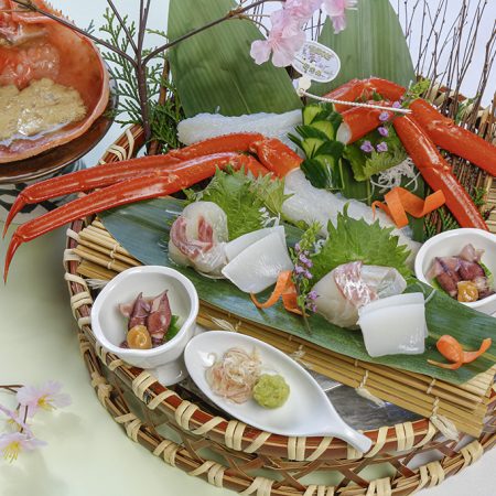 オープンを記念して、タグ付きの活け香住蟹を主役にした